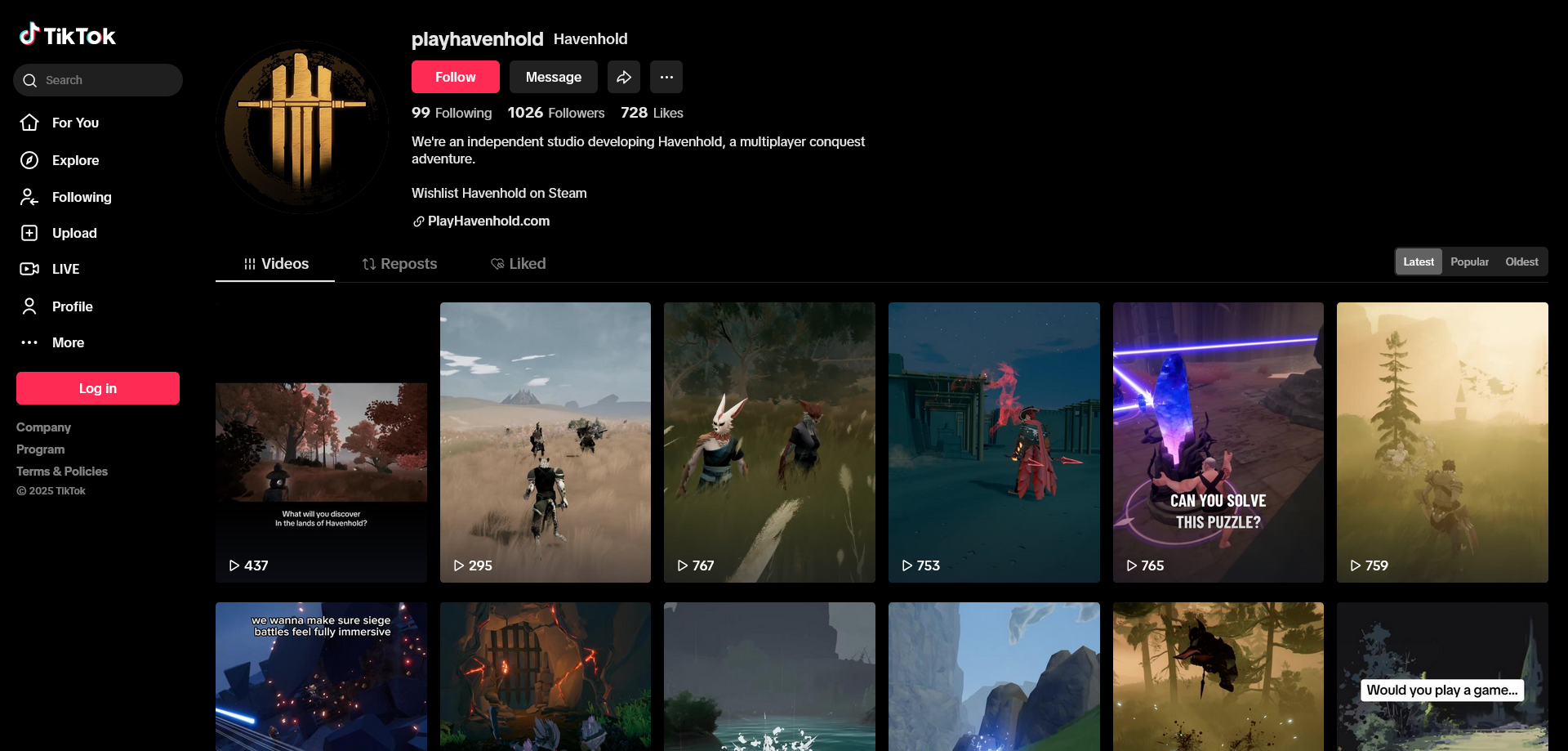 Havenhold’s developers struggled to connect with their target audience, making it difficult to build a strong fan base. I provided multiple consultations, guiding them on identifying and engaging their ideal players through effective hooks, engaging social media content, and targeted outreach strategies.